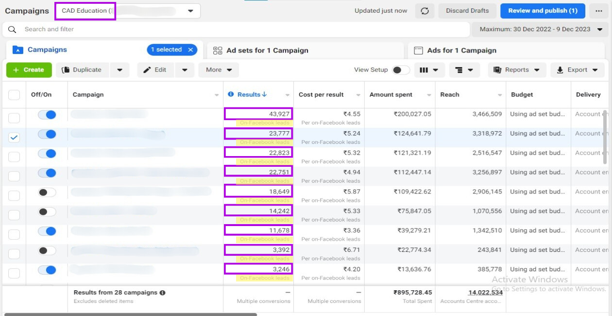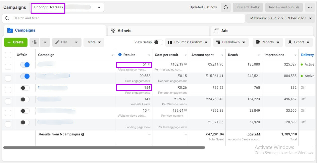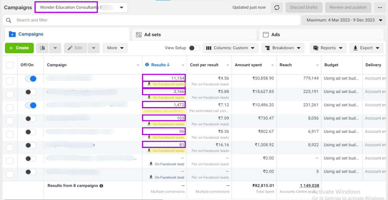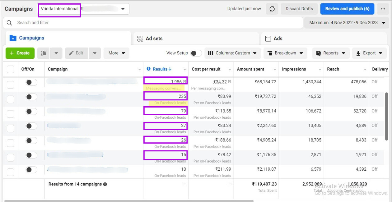 Screenshots from FB Ad Accounts